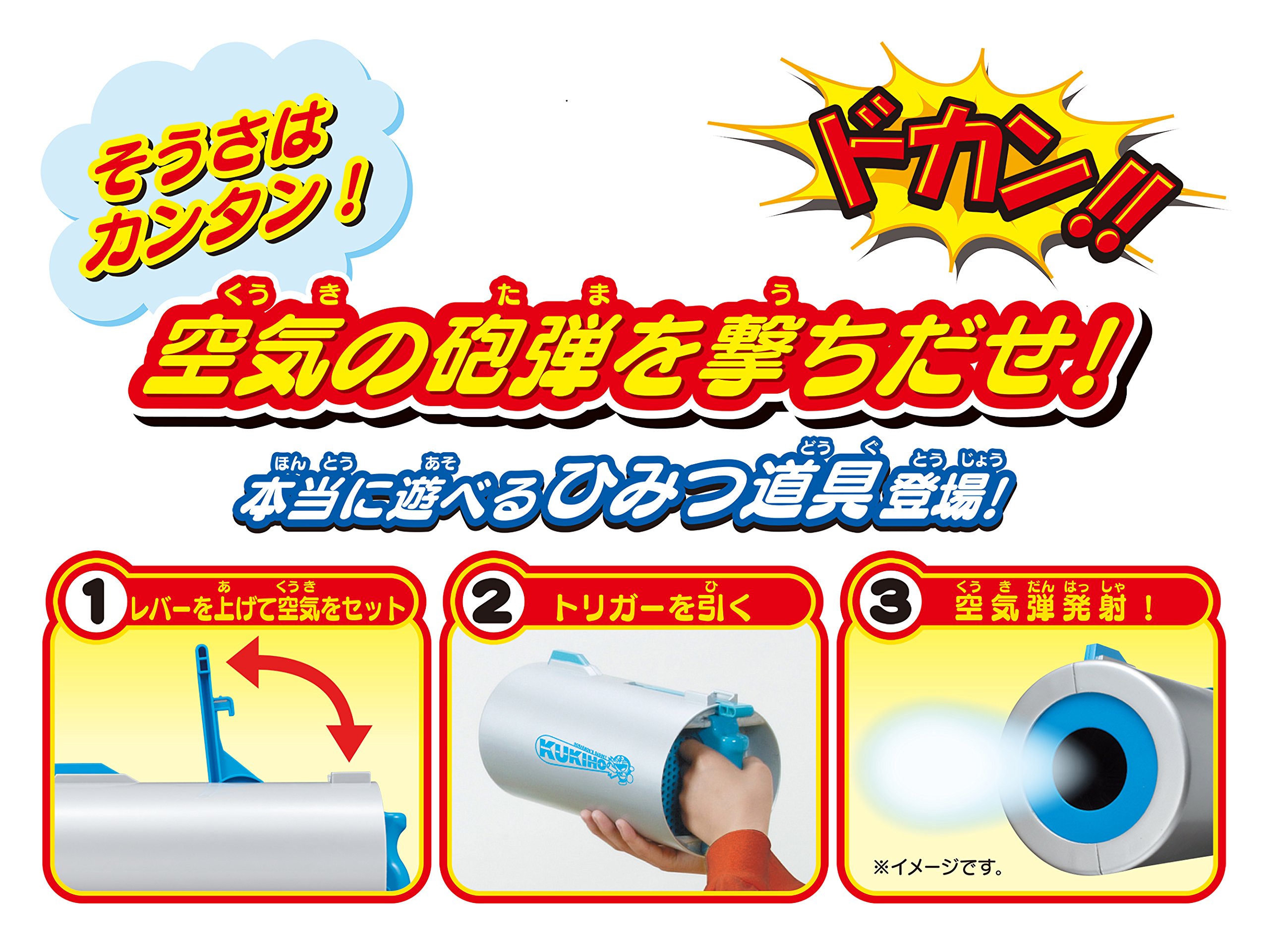 Easy to install with lever manipulation, grasp the large trigger and fire the ball of air with a toucan! Easy operation makes it possible to play with even small children safely.