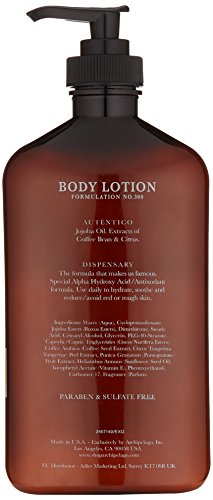 Designed with 1940's Havana in mind, this body lotion employs natural beauty ingredients such as coffee bean and tobacco flower to give it the distinct scent that makes it so popular. The antioxidants and AHA's found in these natural ingredients ensure effective moisturization and relief from redness associated with dry or rough skin. Based on our bestselling home fragrance blend of ylang ylang, tobacco flower and bergamot, our Havana-scented body lotion has a clean, citrus finish and its sophisticated fragrance makes this a favorite body lotion for men and women alike.Feature