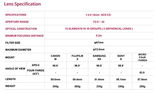 Samyang 12mm F2.0 Objektiv fur Anschluss Micro Four Thirds - schwarz