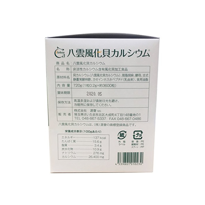 원본상품명: 八雲風化貝カルシウム 3600粒