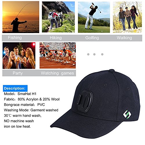 Smatree SmaHat H1 Baseball Hat with Quick Release Buckle Mount for GoPro 5 Session Hero 5/4/3+/3/2/1 ((M 22.44-23.23'')