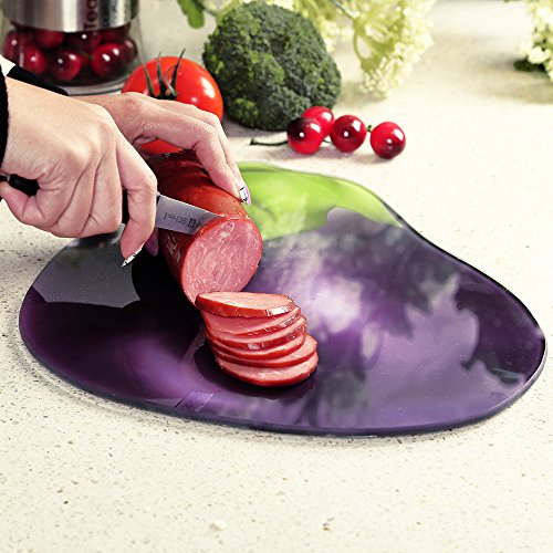 Multi-functional Eggplant Shape Tempered Glass Kichen Cutting Chopping Board Smooth Surface Chef Board 15"x 11" 37.5x28.5cm Eggplant
