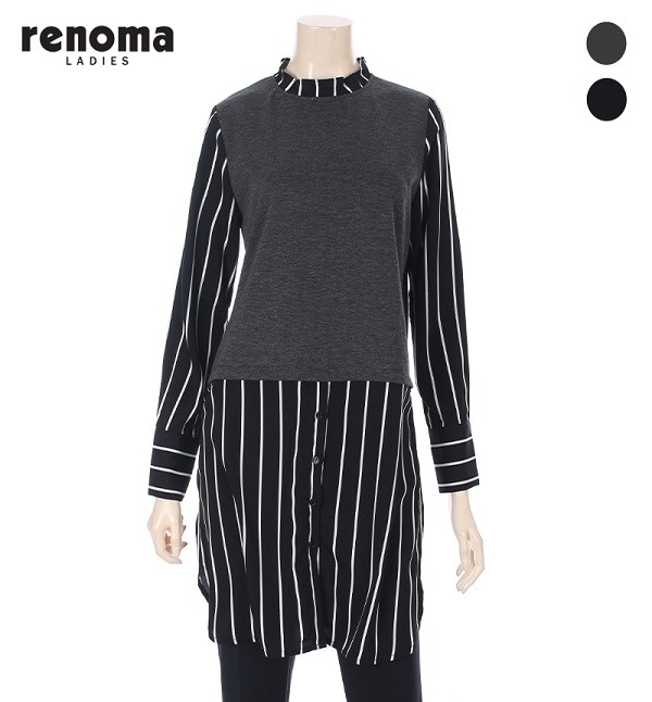 우븐소재 블라우스에 저지 배색으로 레이어드하여 착용한 듯한 블라우스 입니다롱기장의 블라우스로 멋 스럽게 코디하기 좋은 상품이고 여유있게 덜어지는 핏 감으로 세련된 디자인 입니다 슬림한 팬츠나 레깅스 위에 박시하게 코디 하거나 데님 팬츠나 슬랙스와 매칭하기 좋은 상품입니다기장은 33 1/2 인치입니다