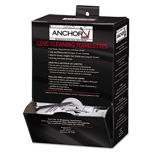 Studio : Anchor Products Publisher : Anchor Products Binding : Health and Beauty Product Description Pre-moistened with C-Clear Anti-Fog, Anti-Static formula for use on plastic, polycarbonate and glass lenses. Strategic placement of towelette dispensers throughout a facility will promote proper lens cleaning habits and extend the life of prescription and non-prescription eyewear. Contains no silicone. Safe and effective with all lens coatings including Anti-Reflective Coating. Also good for use on goggles, face shields, CRT screens and microscopes 0