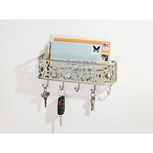 InterDesign Vine Mail Holder and Key Rack – Wall Mounted Letter Organizer and 5 Key Hooks, Satin