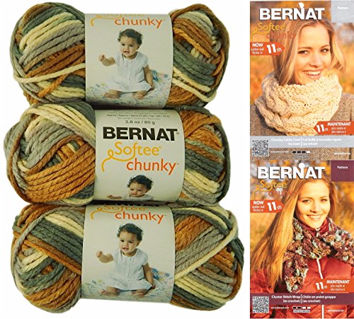 Bundle includes 3 skeins of Bernat Stillness Yarn and Patterns for Chunky Cable Cowl and Stitch Wrap.