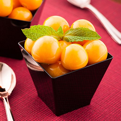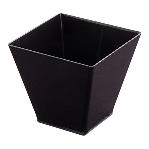 These disposable black plastic desserts cups are also fully recyclable which helps reduce the amount in landfills.