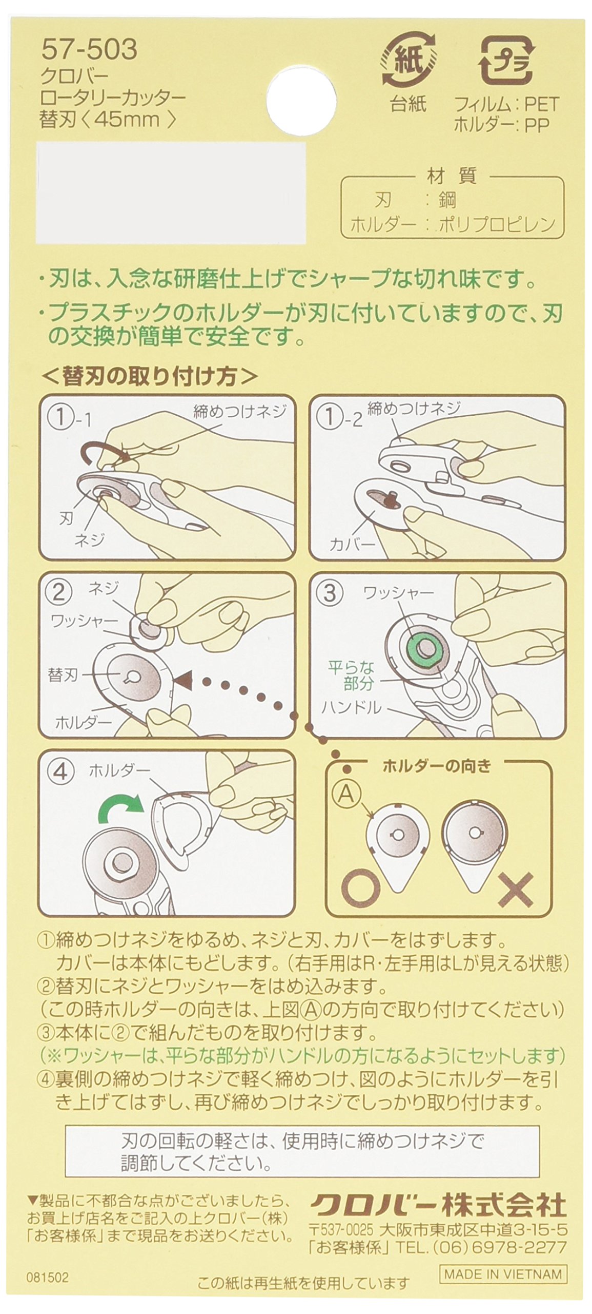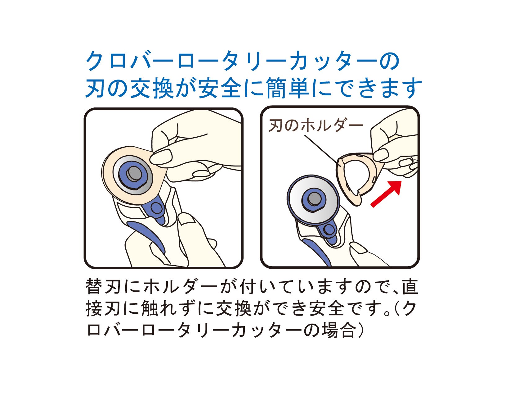 Clover Rotary cutter blade can be replaced safely and easily Since the holder has a replacement blade, it can be exchanged directly without touching the blade and it is safe.