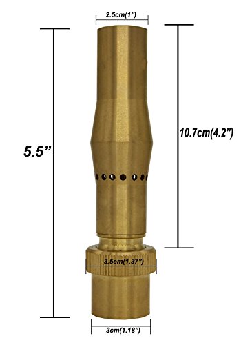 -. Feature : Made of brass, it won't rust and can be used for a long time / Inlet: 1 inch,female thread design / Operation Pressure: 80-150 Kpa / Jetting Height: 4.9-13 feet; Covering Diameter:3.28- 6.5 feet / Item measurement:140x35mm(5.5"x1.37")