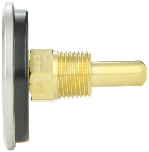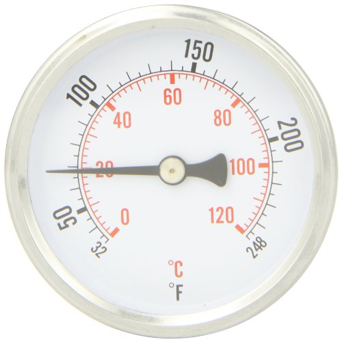 PIC Gauge B2B1-K Aluminum Bimetal Hot Water Thermometer with Removable Brass Well Attached, Back Connected, 2 1/2" Dial Size, 1 1/2" Stem Length, 30/240° F and 30/240° C