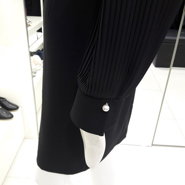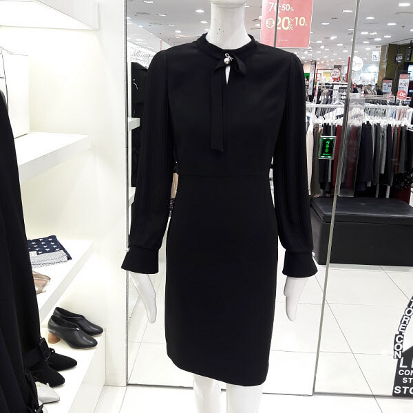 17F/W 신상 러블리 여신 원피스입니다 깔끔한 스타일에 소매포인트로 여성스러우며 전체적으로 우아한 분위기이며 데이트룩이나 모임룩으로 추천합니다 플리츠소매가 세련되보이는 디자인입니다