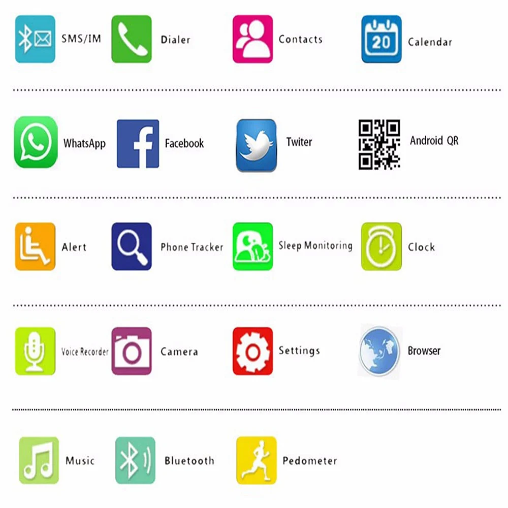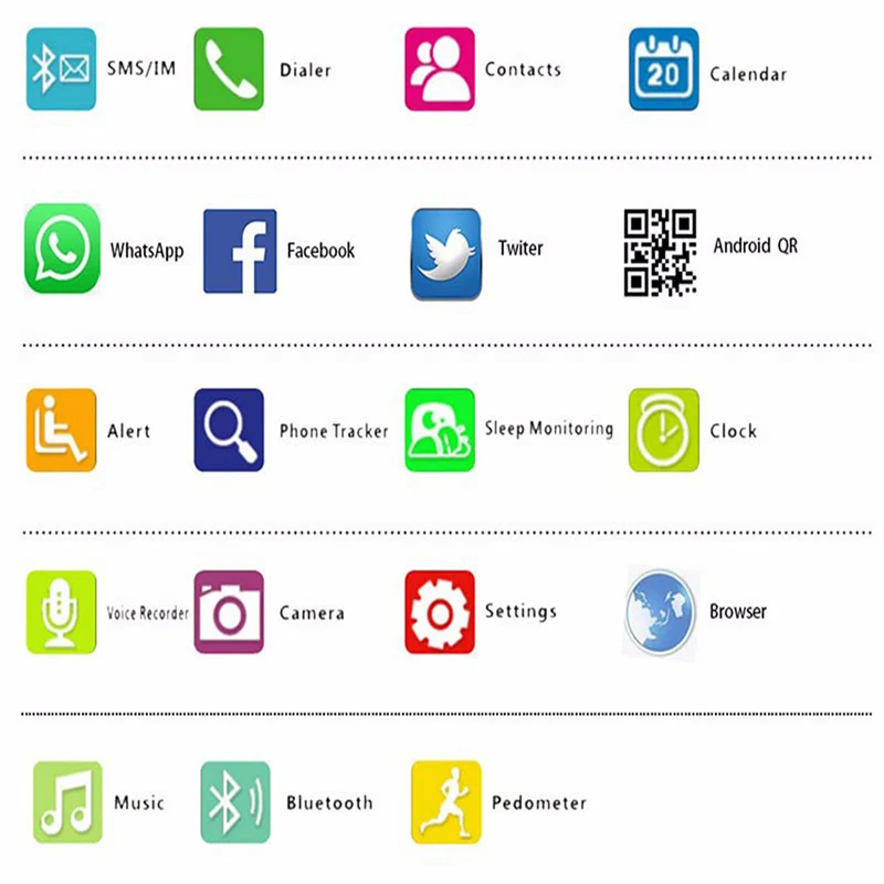 Function:Passometer,Sleep Tracker,Calendar,Dial Call,Alarm Clock,Calculators,Remote Control,Month,Answer Call,Message Reminder,Week,Call Reminder