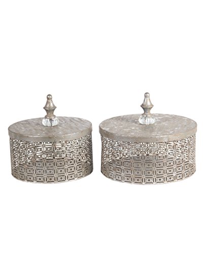 - Contemporary Mediterranean 2 piece metal round storage containers with Silver Spire handle