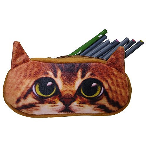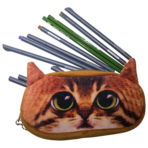 Cute Pencil Case, Adorable Cats or Dogs. Super Soft Plush Pouch, Perfect Bag for Pens, Pencils, Cosmetics. Use as Organizer or Wallet To Carry Cash, Coins and More. (Toby Cat)