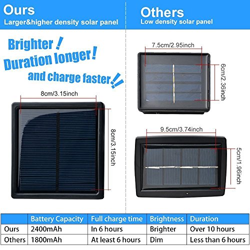 - Super Brightness & Fast Charge & Long Working Time: Our High Density Solar Panel with 24000mAH Battery instead of the regular battery (Just 1800 mAh) on the market, which means it will be full charged fast and bring a super brightness when you used. And it can keep lighting for 12 hours at night if the solar panel absorbs enough sunshine during the day. It is noted that this curtain lights with sensor will turn off automatically if the solar panel to be shined by light directly