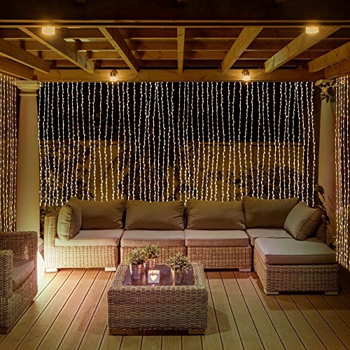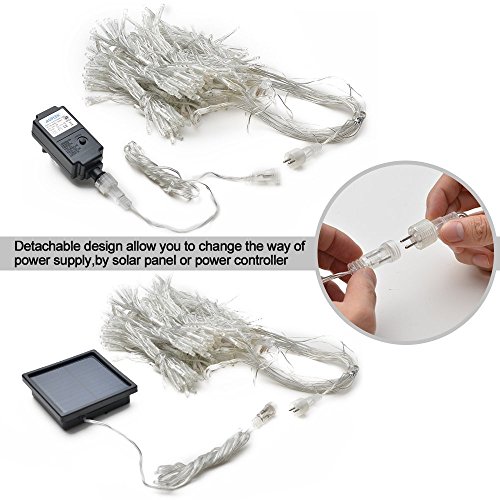 Curtain Lights, AGPTEK 9.8ft x 9.8ft Solar/Power driver (2-way ) String Lights for Christmas/Halloween/Wedding/Party Backdrops - FULL Waterproof & UL Standard - Warm White
