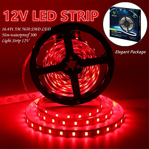 Led Strip Lights, IEKOV™ 5630 SMD 300LEDs Non-Waterproof Flexible Xmas Decorative Lighting Strips, LED Tape, 5M 16.4Ft DC12V (Red)