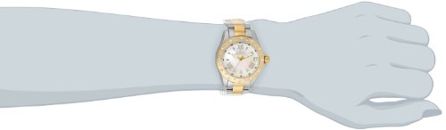 Two-tone bracelet watch with crystal-accent bezel and mother-of-pearl dial with date window at 3 o'clock position