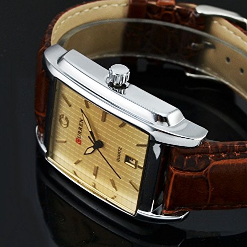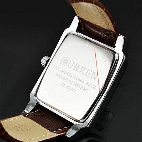-. Title : CURREN Fashion Men Popular Silver Square Dial Fashion Leather Strap Wrist Watch 8097G