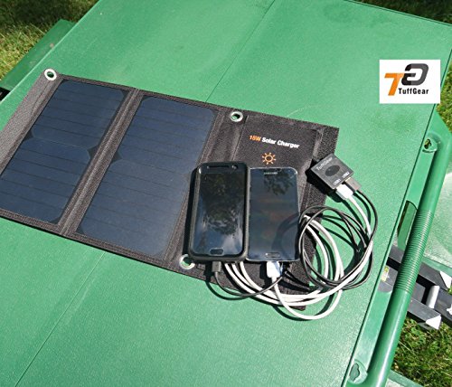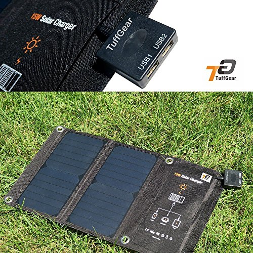TuffGear 15W Foldable Solar panel USB Charger portable and highly efficient Solar Panel for iPhone, iPad, iPods, Samsung, Android Smart Phones, Tablets, Any USB Devices and More