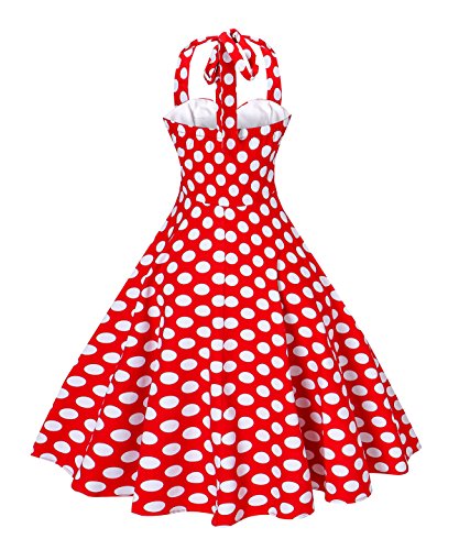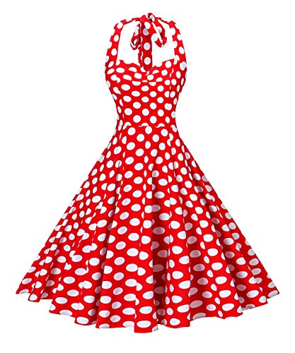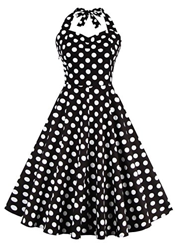 | V Fashion Women's Rockabilly 50s Vintage Polka Dots Halter Cocktail Swing Dress |