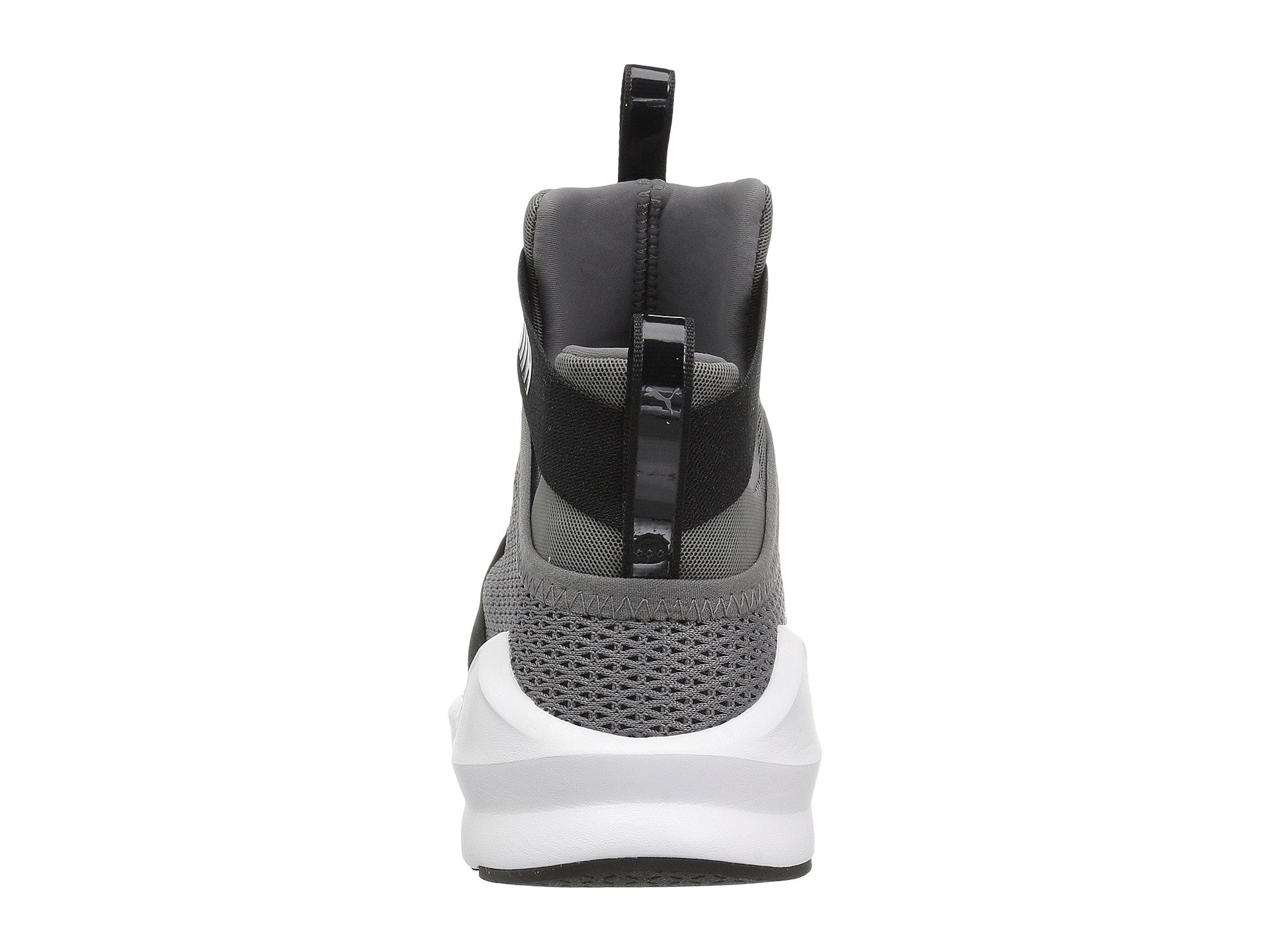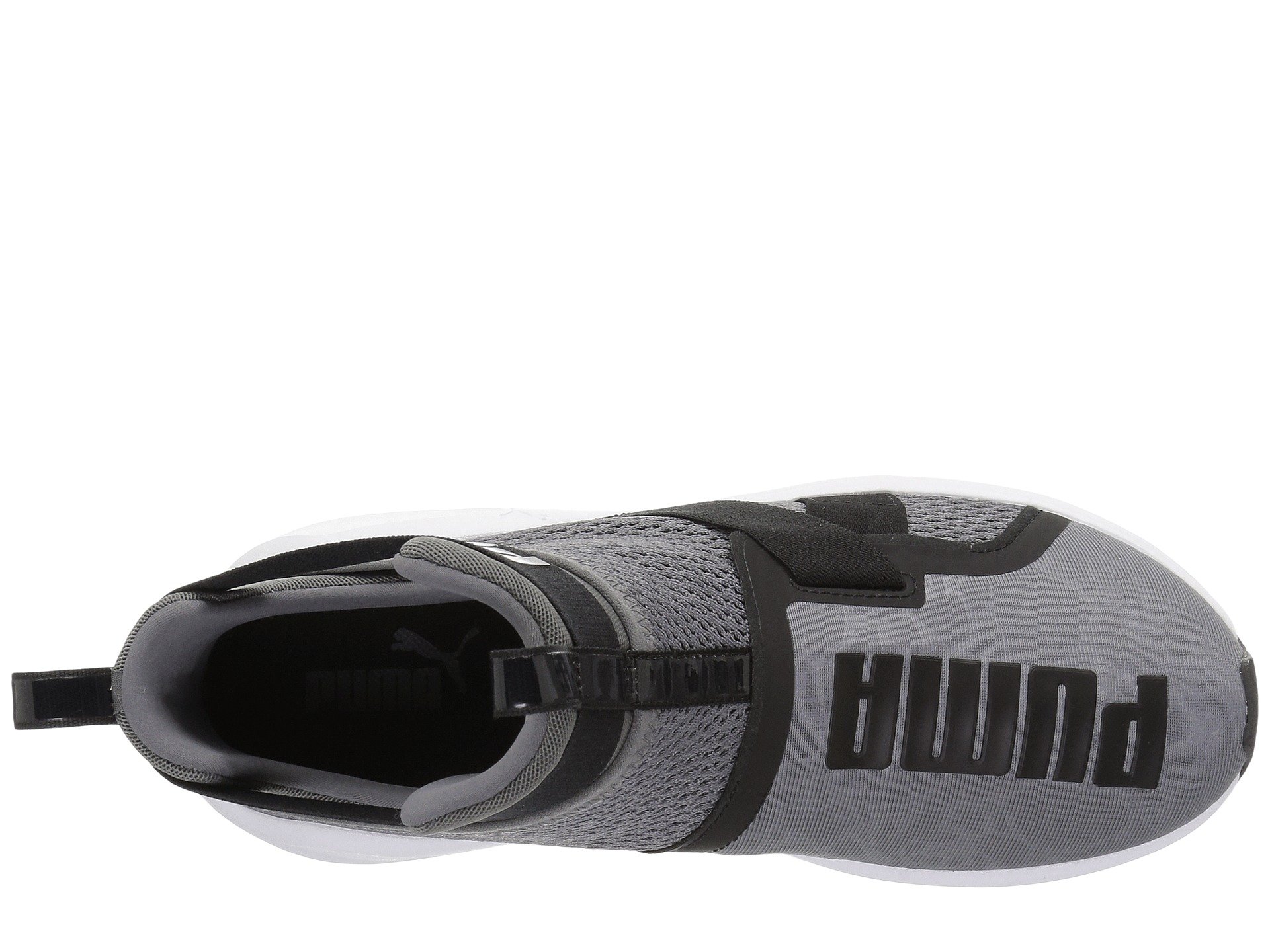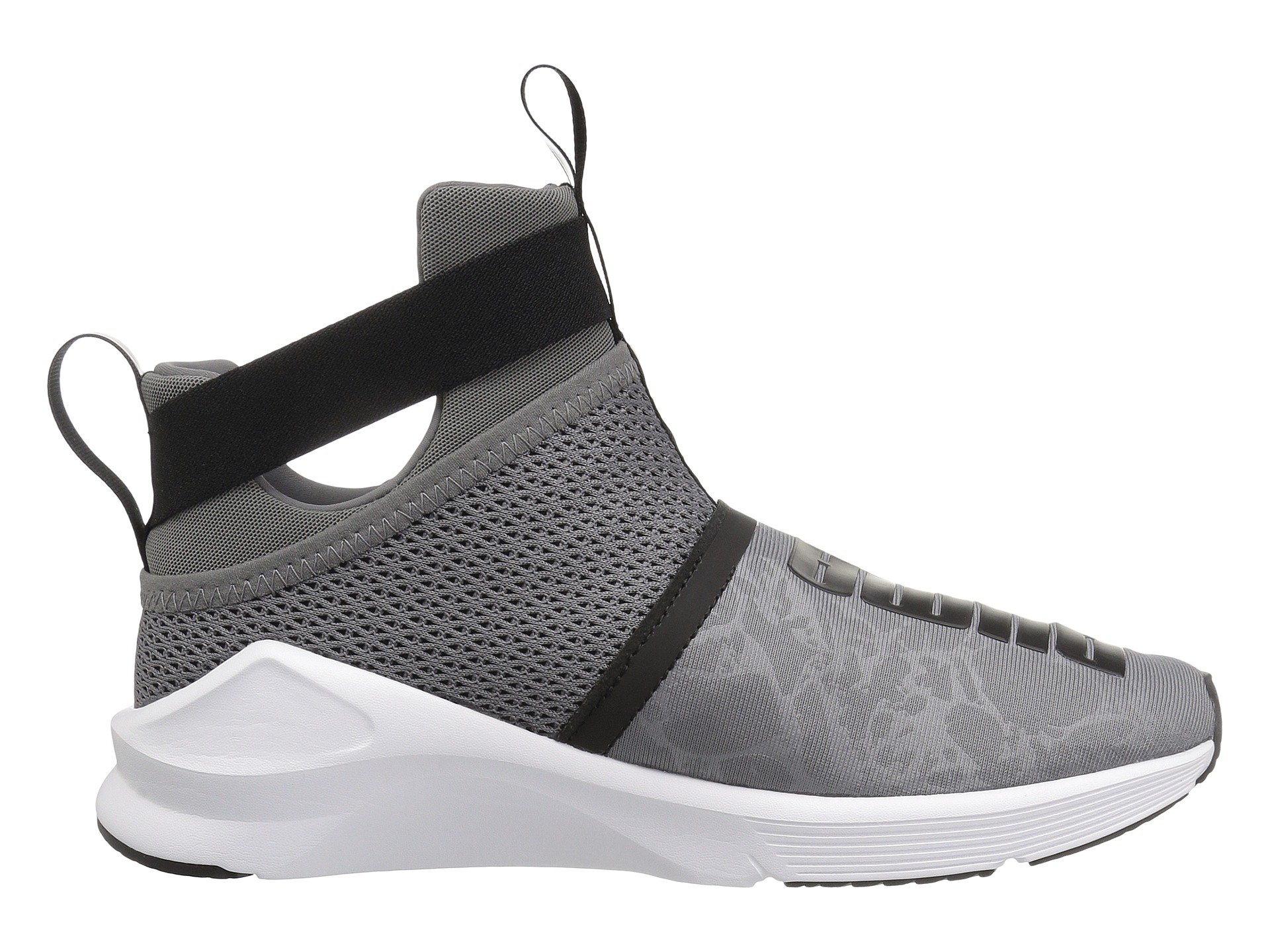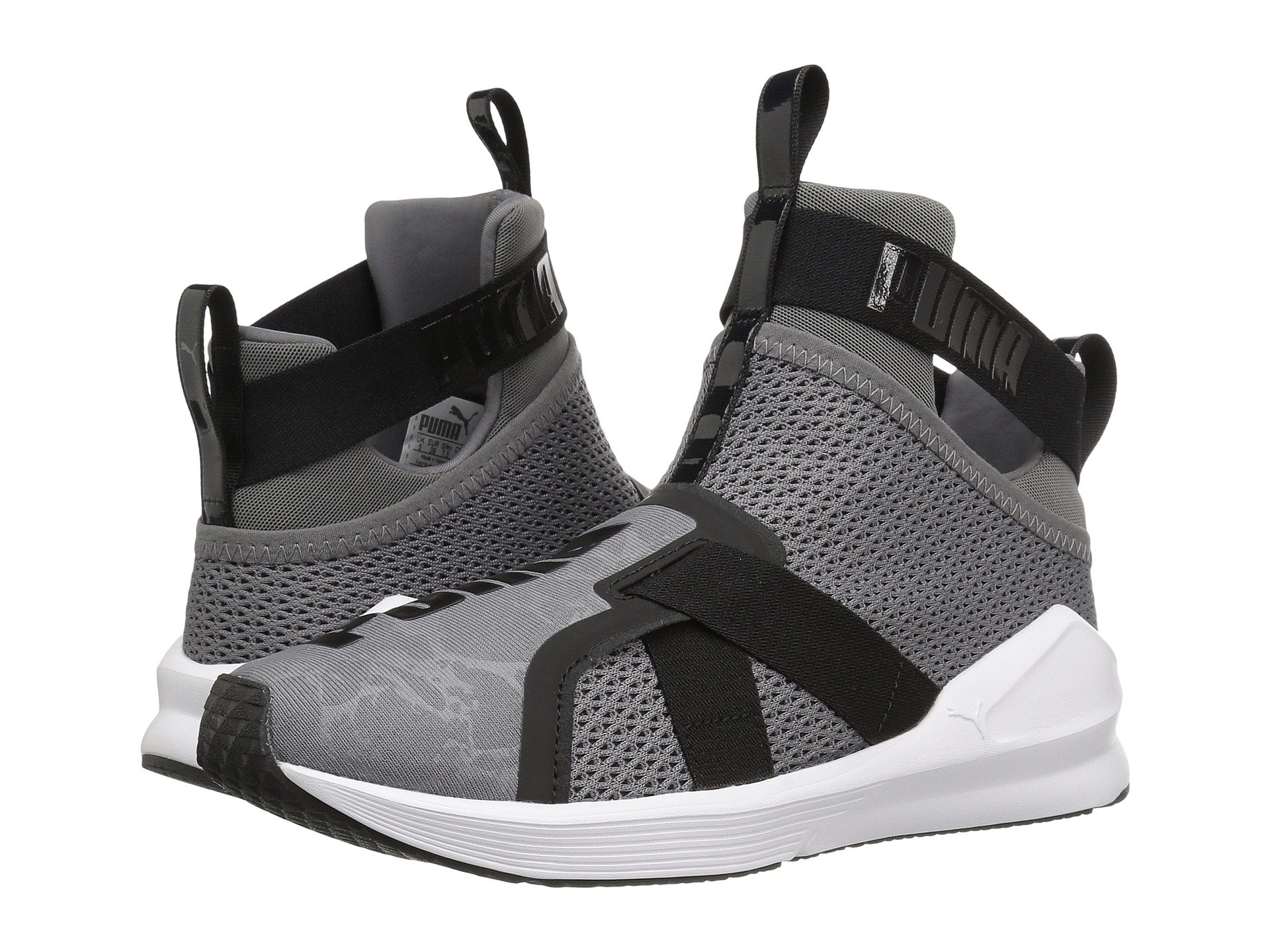 | Product Information SKU: #8828027The Fierce Strap sets your style apart.Synthetic uppers with a mesh overlay and round toe.Slip-on bootie construction with pull-tabs at tongue and heel for an easy on and off.Elastic bands around ankle for a more supportive fit.Reinforced forefoot cover with elastic straps.Extra-high tongue for added unique style.PUMA Cat Logo at medial side; PUMA Formstrip at lateral side.Breathable textile linings.Offers full-length flex grooves on outsole that provide dynamic multi-directional movement.Exaggerated thickness at heel, medial, and lateral sides for greater stability.Durable rubber outsole for added grip.Imported.Product measurements were taken using size 10.5, width B - Medium. Please note that measurements may vary by size.Weight of footwear is based on a single item, not a pair.Measurements: Weight: 9 oz |