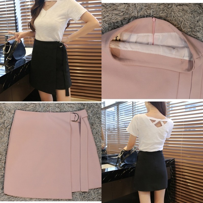 ♢ポイント♢ シンプルな台形シルエットのラップスカートは飾らないコンパクトなデザインでどんなトップスとの相性も良く着回しの効く1着です♪ 脚の出る面積が広い分脚長効果もバッチリ◎秋冬はタイツと合わせて着て頂けます。