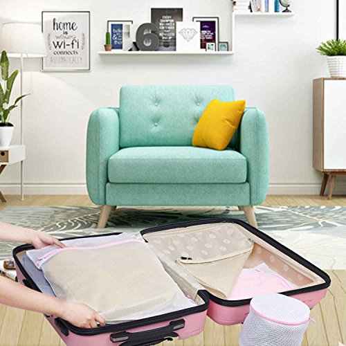 JAKAGO Laundry Bags Zippered Mesh Washing Bag Bra and Lingerie Bags Travel Packing Organisers for Blouse Laundry Underwear Stocking Hosiery Lingerie and Bra, Set of 7 (S2, M2, L1,XL1,Bra1)