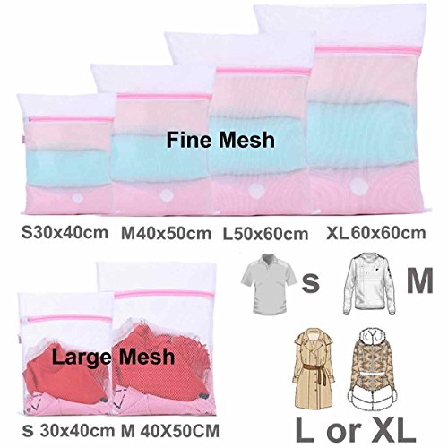 - Package included : set of 7 laundry bag-fine mesh : 1 extra large (24’’x24’’) + 1 large (20’’ x24’’)+1 medium (16’’ x20 ‘’)+1 small (12’’ x16 ‘’) , coarse mesh : 1 medium (16’’x 20’’)+1 small (12’’ x16 ‘’) , 1 bra wash bag (7’’ x 7’’ )