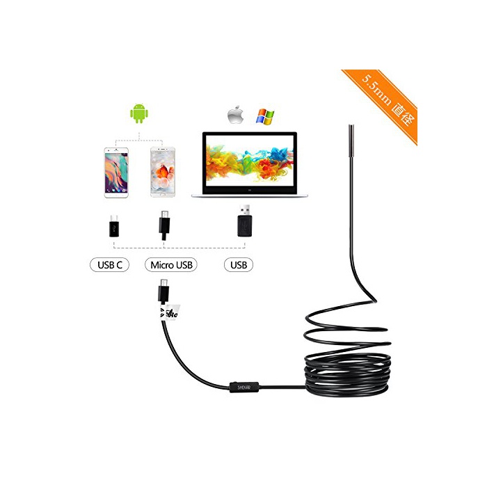 원본상품명: SHEKAR 5.5MM極細レンズ 硬性 USB視鏡 OTG COMSカメラ搭載 IPX67防水 調節可能なLEDライト6搭 (5m)