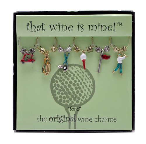 -. Feature : That Wine is Mine, the original wine charms / Unique whimsical charms instantly individualize wine glasses by wrapping a loop around the stem / Sets of six hand cast pewter and hand painted charms / Elegant gift box / Choose from over 70 of different themes: wine country, wedding, girl stuff, tropical, animals, fun & games