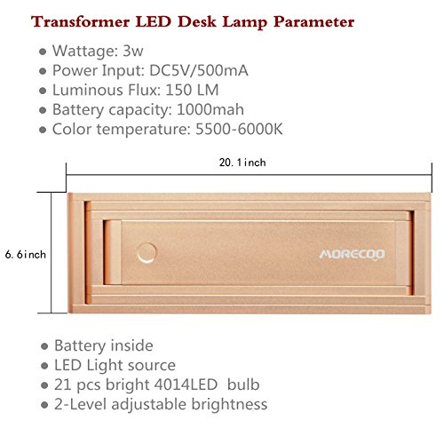 -. Title : Morecoo LED Desk Lamp Eye Protection Foldable Lamp Dimmable Portable Lamp Reading Light& USB Rechargeable,2 Brightness Settings