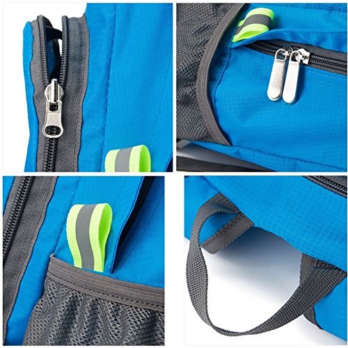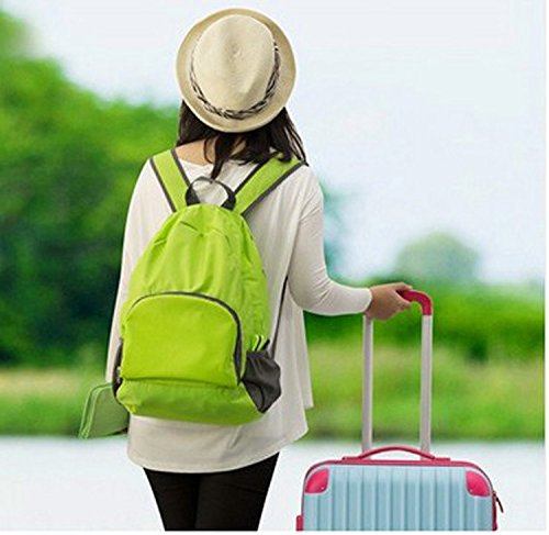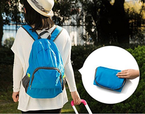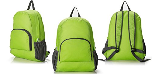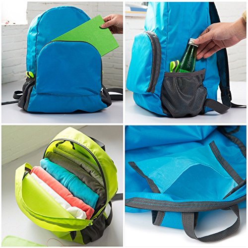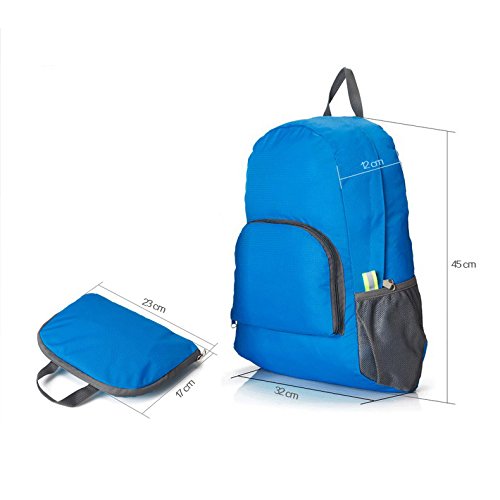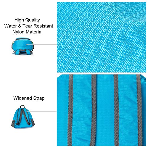 -. Feature : Ultra Lightweight Backpack: made of high quality tear resistant nylon material, weight only 5.5oz, but very durable, with the capacity of more than 15 lb. / Foldable Small Bag: Easy to fold up into small pocket (9.0"x6.7"x1.0"). You can pack it in your suitcase as a back-up backpack. / 20L Capacity: well constructed and compact storage, with a front zippered pocket, an inside zippered pocket and two side mesh net spaces for water bottle, umbrella etc. / Water Resistant: treated with a water-repellent coating for lighter rain, dried quickly. / This backpack is perfect for day trips, travel, hiking, rafting, camping and shopping, and great gift for everyone.