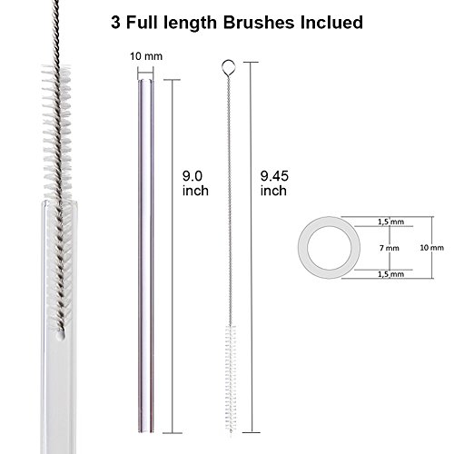 - ★EASY CLEANING - Simply rinse them out after every use and you're ready to go. However, we do include a cleaning brush just in case you get a chunk of fruit from your smoothie wedged in there. Also these glass straws are dishwasher safe.