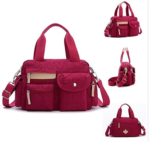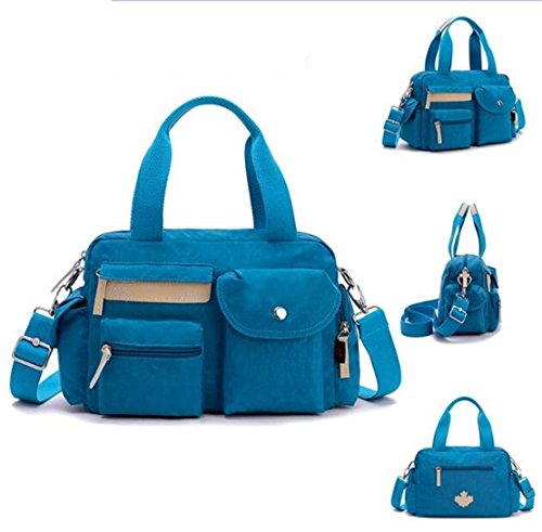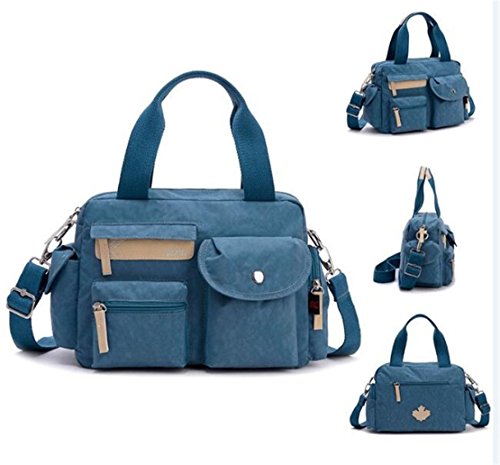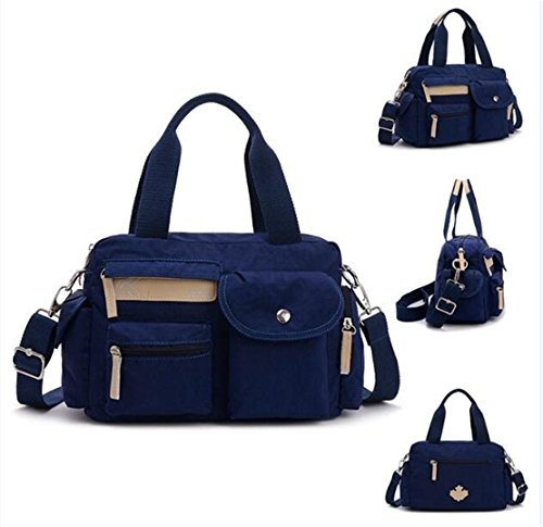 -. Feature : Product dimension:12.2" x 4.7" x 8.7" (LxWxH) / High quality nylon fabric with faux leather trim and fully polyester cotton lined interior. / One main zipper compartment with a middle zippered divider,an interior zipper pocket and regular wall pouches.3 front zippered pocket,1 back zippered pocket and 2 side pockets. / Adjustable & Detachable Padded Shoulder Strap for comfort and Dual Handles for easy carrying / Super light multi-purpose messenger bag for girls and women.Great for school,work,travel,sports.
