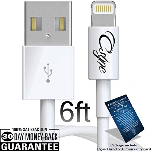 -. Binding : Wireless Phone Accessory -. Brand : CsyncDirect -. Feature : 2 Year Guarantee V.I.P Warranty Card - 100% Satisfaction-100% Performance-for 100% of your 2 year GUARANTEED! We even offer you a Guarantee Card, that can be found in your package. / Perfectly Design For - ensures complete charge and sync compatibility with iPhone 6s Plus / 6s / 6 Plus / 6 / 5s / 5c / 5 / iPad Pro / iPad Air / Air 2 / iPad mini / mini 2 / mini 4 / iPad 4th gen / iPod Touch 5th gen / iPod nano 7th gen and Beats Pill+ / Customer Choice - Our cables are made of High quality material. They are fitted with a specialized micro chip inside the Lightning connector to ensure 100% compatibility with your device. / What You Get - (6 feet) of CsyncDirect(TM) Apple certified, MFi USB Lightning 8 Pin Cables and 2 Year Guarantee V.I.P Warranty Card with Award Winning 2 year Support for your purchase. / Perfect Fit - Compact (0.30in × 0.20in) heat-resistant Lightning connector fits into virtually all case cutouts, big or small even fit the Lifeproof iPhone Case with no problem. -. Label : Electron -. Manufacturer : Electron -. PackageQuantity : 1 -. ProductGroup : Wireless -. ProductTypeName : WIRELESS_ACCESSORY -. Publisher : Electron -. Size : 6 feet -. Studio : Electron -. Title : Lightning Cable iPhone Charger 6ft CsyncDirect(TM) Lightning to USB Charging and Sync Cable for Apple iPhone 6s 6 plus SE 5S 5C 5 / iPad mini Air Pro / iPod Touch Nano