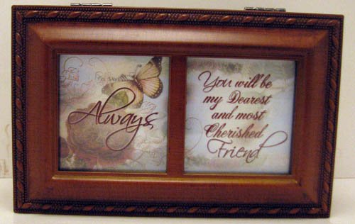 Title : Always My Dearest Cherished Friend Friendship Woodgrain Music Musical Box Plays Light Up My Life
