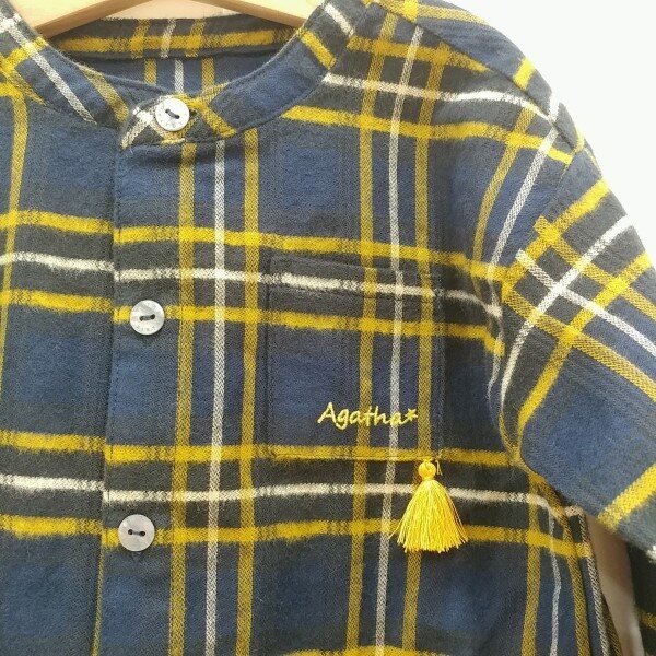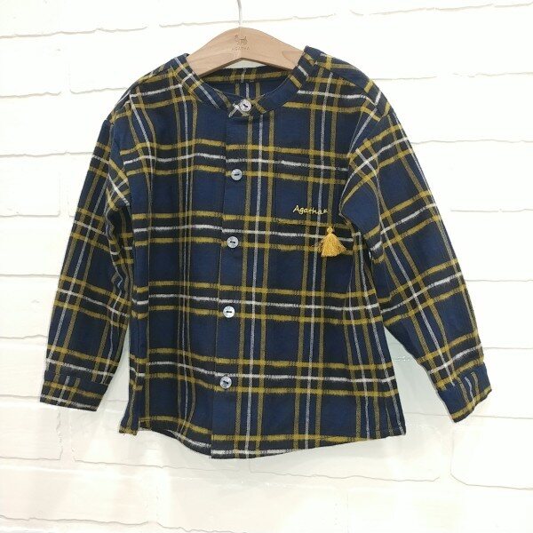 멀티 체크 소재를 사용한 베이직한 헨리넥 셔츠로 주머니의 로고자수가 포인트인 스타일입니다.