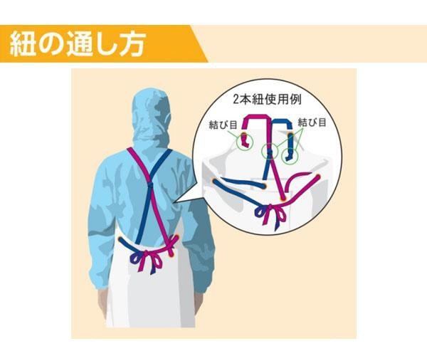 抗菌剤配合の素材を使用した前掛。専用の機械によって加工されており、縫目(ミシン目)のない作りになっています。縫目への汚れ溜まりやミシン糸のほつれがなく食品製造などに最適です。 |