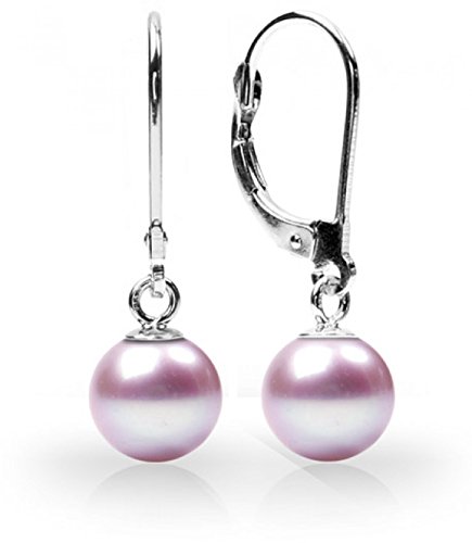-. Title : 14K Gold Round Pink Freshwater High Luster Cultured Pearl Leverback Earrings - AAAA Quality