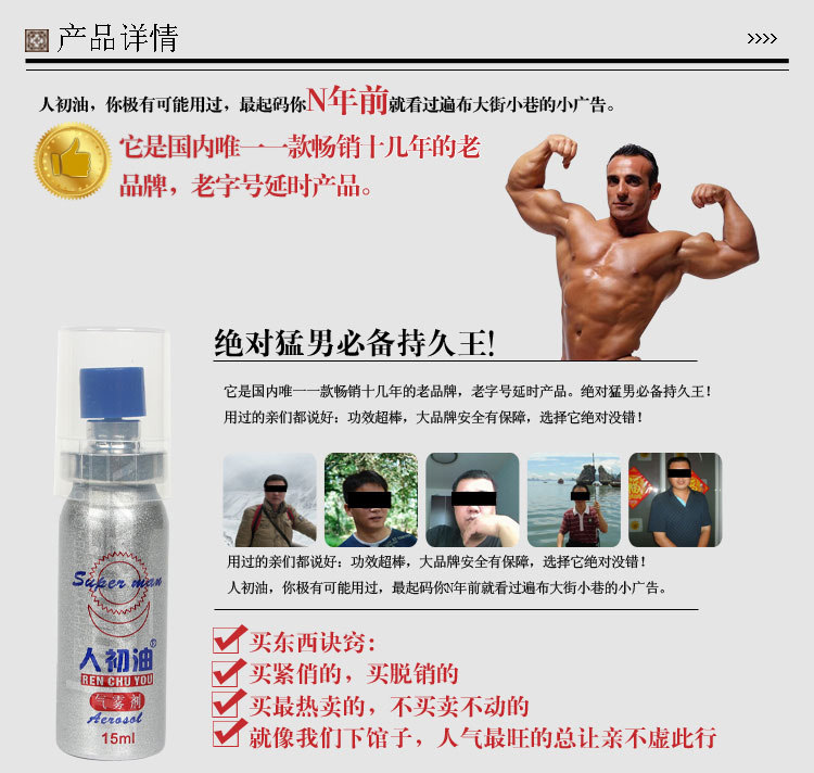 [Note] 1, after the paint coating the product effective after 30-60 minutes, the time interval is too long invalid. 2. discomfort after spraying, use warm water sprayed over the site. (8ml loaded due to slightly different ingredients, faster onset time, only about 3 minutes to intercourse, more suitable for use in the elderly)