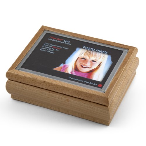 Studio : MusicBoxAttic Publisher : MusicBoxAttic Binding : Kitchen Product Description New "Pop-Out" lens with quick release system - photo frame music box Fits 4" x 6" photo print siz 18 note mechanical movement inside - please see "item options" for available tune Inside lined with a creme velvet interio 1 open compartment / Ring Rol Constructed of hardwood / pine finis Flat base - gold hardwa Dimensions: Length - 7"; Width - 5.25"; Depth - 2.5" 0