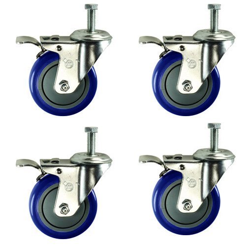 Service Caster SCC-TSTTL20S414-PPUB-121315-BLUE-4 Total Lock Caster, Blue Polyurethane Wheel, 1/2"-13 x 1-1/2" Threaded Stem (Pack of 4)