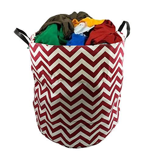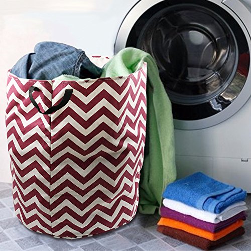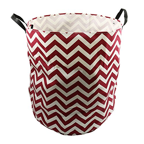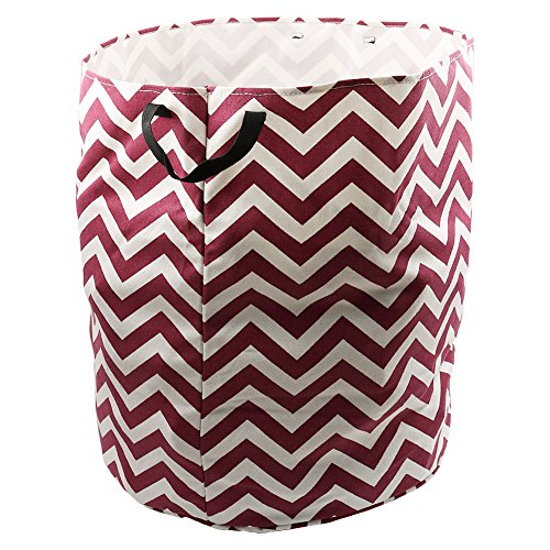 Amerzam 18.5" x 16.9" Foldable Laundry Basket, Round Cotton Linen Collapsible Laundry Hamper Storage Basket Bag with Strap Handle (Wine Red Stripe)