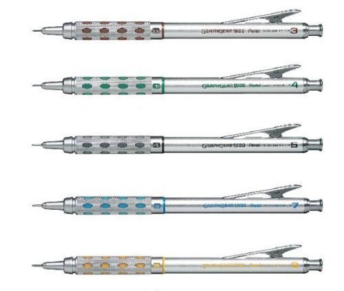 Pentel Graphgear 1000 Automatic Drafting Pencil, 0.3 mm, 0.4 mm, 0.5 mm, 0.7 mm, 0.9 mm 5pics Set