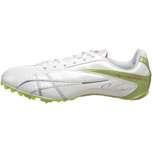 This women's specific spike is perfect for sprinters and jumpers looking for fast light comfort. Features an EVA heel pad, synthetic leather and mesh upper, combination lasting, a nylon spike plate, and sleek colorful designs.Feature