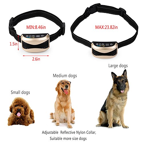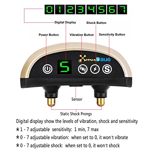 ★Feature Digital display ★ The digital tube shows the gears of vibration ,shock and sensitivity, each mode you can feel free to switch. Adjustable mode ★1-7 level adjustable sensitivity, 0-7 gears of the vibration/shock, you can choose according to the instructions or the actual needs of your dog. Automatic protection ★ an automatic protection mode to deactivate the collar if activated 7 times in 1 minute then back to work in one minutes. Rainproof collar ★That is suitable for all of your dog's indoor and outdoor activities. Adjustable Reflective Strip ★ That allows you to keep an eye on your dog even in low visibility and also can protects your dog's life from cars etc. Apart from that★the collar has an intelligent barking chip. The chip always prevents false triggering. Need any help, please also don't be hesitated to contact us