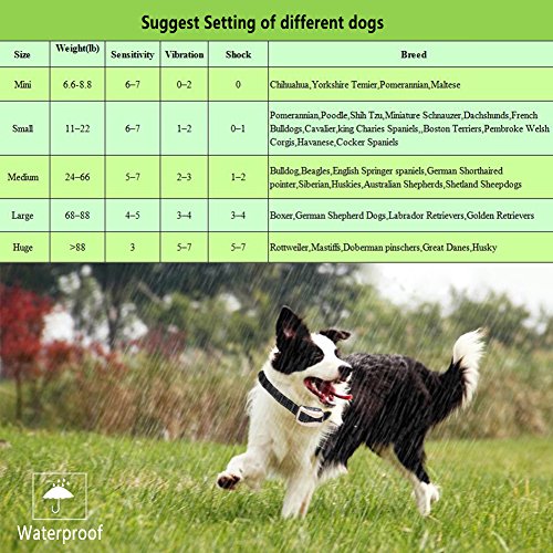 ★Note: 1. Dogs of different sizes respond to stimulus of different intensities. Test which sensitivity level your dog best responds to from the lowest sensitivity gear 1, and move up the scale until the collar elicits a response from your dog. At this way, It won't hurt your dogs. 2. This no bark collar is training aids, not punishment. Don't let your dog sleep with it, it would be triggered when he/she yawns. 3. The digital screen displays the battery power when waking up or no operation.