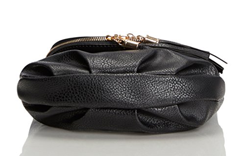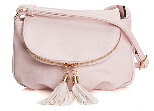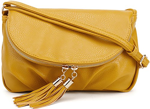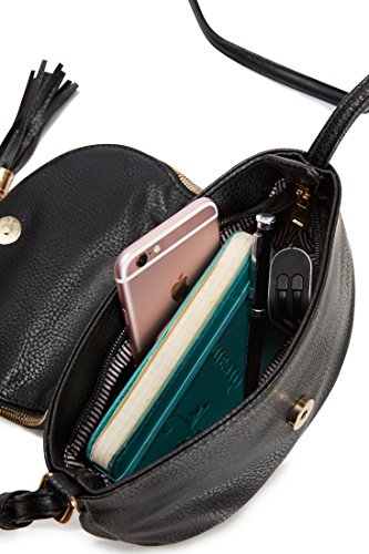 Lily Janes Crossbody Messenger Womens Flap Bag has an adjustable shoulder strap (12 inch to 25 inch drop) and 4 total compartments including the flap pocket where the flap itself is actually a relative spacious zippered pocket. Made of soft faux leather with fabric lining & gold tone hardware, the bag also features tassels on the zippers. Can fit iPhone 7 / 7 Plus / Galaxy S8 / S8+ / Note5.Feature