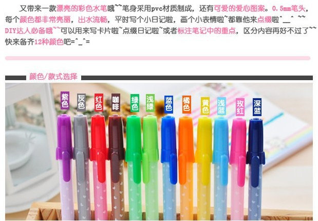Other details: 0.5mm jelly pen is the manufacturer of the naming of it a color pen is general no other special effects!!